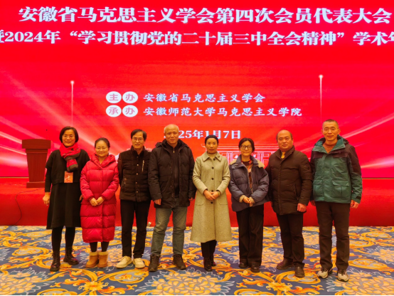 2025年1月7日,安徽省马克思主义学会第四次会员代表大会暨2024年“学习贯彻党的二十届三中全会精神”学术年会在安徽芜湖举行。本次年会由安徽省马克思主义学会主办、安徽师范大学马克思主义学院承办。来自中国科学技术大学、合肥工业大学、安徽大学、安徽师范大学、安徽工业大学等省内多所高校的100余名专家学者参加会议。我院郑洁院长、阮超群、周仁准、张蓉、童心刚、徐建、庄新霞、张雅丽等老师受邀参会。