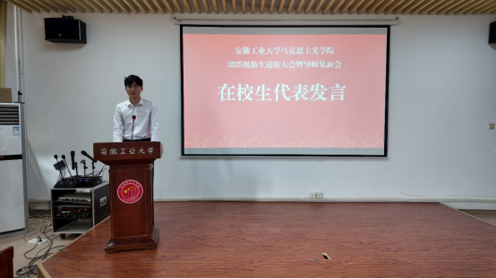 在校生学生代表发言环节,2023级研究生武扬波同学向学弟学妹们分享了自己学习和生活的感悟,并给2025级新生三点建议。第一,规划先行,把握时间,明确自己的学术目标与职业愿景。第二,勤学不辍,勇于探索,厚实自己的理论功底,锤炼自己的科研本领。第三,自律为基,持之以恒,保持对真理的热爱、对理想的坚定。