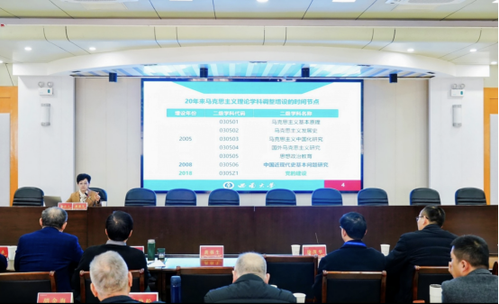 黄蓉生教授首先指出,马克思主义理论学科的设立是坚持和发展中国特色社会主义的必然之举,是繁荣发展哲学社会科学的根本要求,也是实施马克思主义理论研究和建设工程的重要任务,更是加强和改进大学生思想政治教育的关键抓手。她强调,该学科自2005年设立以来,在推进党的思想理论建设、巩固马克思主义的指导地位,加强高校思想政治理论建设等方面发挥了不可替代的作用。 黄教授提出,在新的时代条件下,马克思主义理论学科应朝着强化马克思主义中国化时代化理论武装、坚定马克思主义理论学科自信、建构马克思主义理论学科自主知识体系和培养马克思主义理论学科专业人才四个方向持续发力,为建设教育强国和实现民族复兴贡献学科力量。